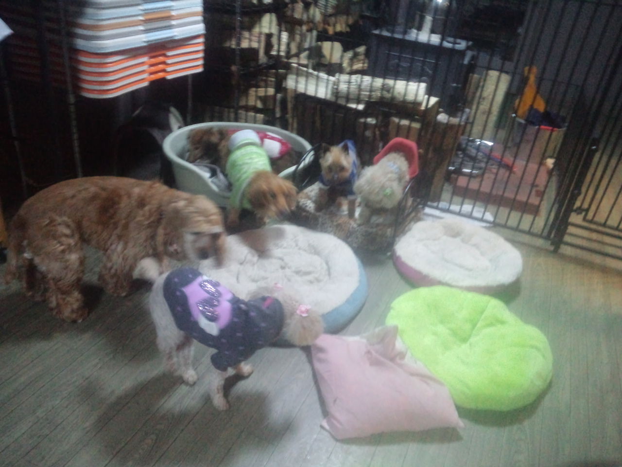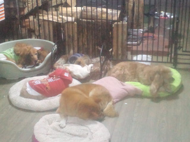 2015年01月17日 ダディー 深夜便 老犬ホームドッグハウスダディーは、各々のワンコ達にサークルを用意してます。 が みんな出て来て共有スペースで過ごす事が多いです。 夜もサークルで寝る子は皆無、どこで寝るかと言うと…。 みんなストーブ前に集まって寝てます。 やはり犬は群れで生きる動物、みんな一緒が落ち着くんですね。 先日入居したコッカーチャッピーちゃん、彼女もすっかり群れの一員になってます。 と言うか… 群れのリーダーになりつつあるかな?