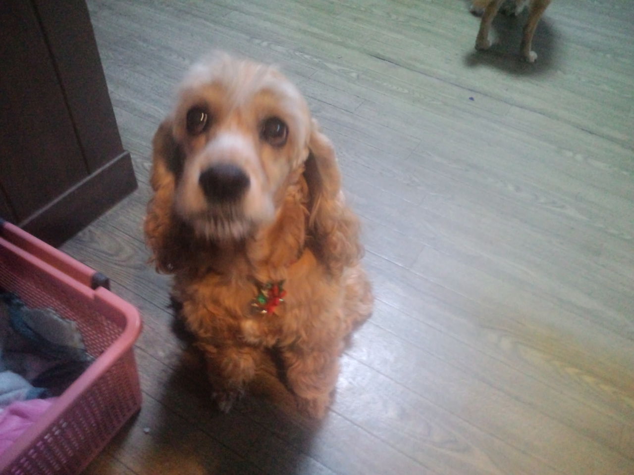2015年01月10日 コッカーちゃんです 今日から生涯預かりになった、コッカースパニエルのチャッピーちゃんです。 やはり最初は不安げで騒いでましたが、今は安定してきました。それでもご飯はしっかり完食してました。初日からご飯を完食するなんで、馴染むのも早そうです。