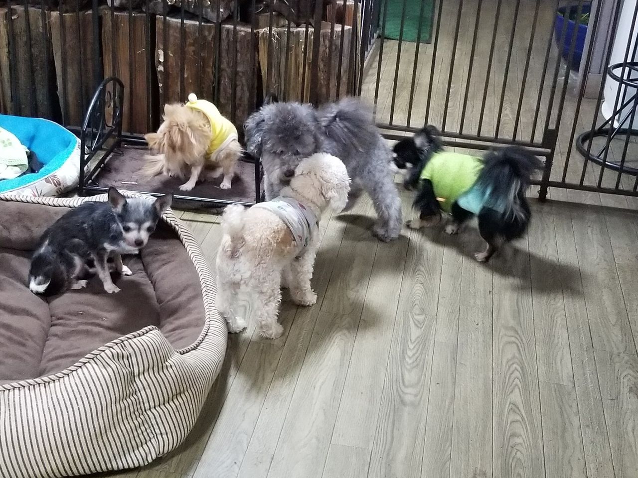 2017年11月20日 トイプーむぅたくん 長期お預かりのトイプーむぅたくんが里帰りから帰ってきました。 飼い主さんが見えている時はヒュンヒュン鳴いていましたが、デッキにいた元気組と再会すると大喜び♪ トイプーゆずちゃんとはじゃれあって遊んでいます