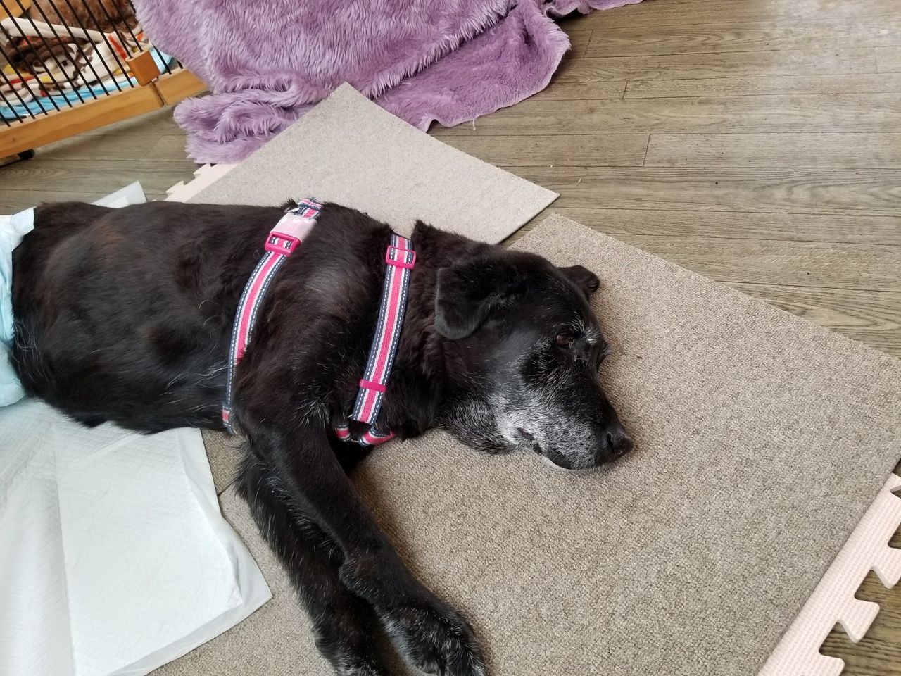 2017年11月19日 ラブラドールアメリちゃん ラブラドールアメリちゃんがチェックインしました。 今日から生涯お預かりになりました。 最初は鳴いていましたが、少し時間が経つと横になり寝ていました。 やはりおむつを外してしまうので、とりあえず取ったままで過ごしてみます。 うんちをしましたが、下痢ではありませんでした。 環境が変わり、慣れるまでは体調を崩しやすいので様子を見ていきたいと思います。