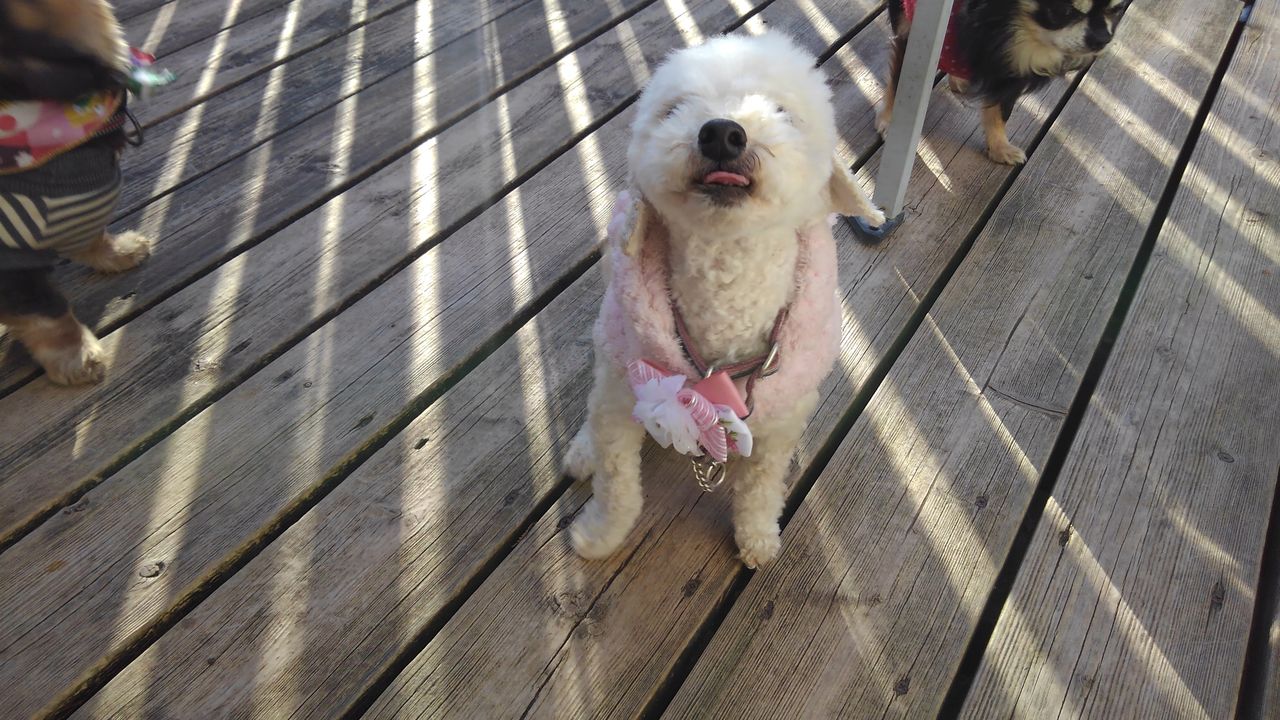 2019年01月30日 老犬ホーム ペットホテル軽井沢 小型犬エリアでは http://karuizawa1jpla.web.fc2.com/このところ雪が毎日降って寒かった軽井沢ですが、今日は日が出て暖かな陽気です。小型犬達はなかなかデッキに出せなかった日が続いていたので、今日はデッキで日向ぼっこです。とは言え、アクティブな子とアクティブでない子の個性がハッキリしていて、皆が出たがる訳ではないのです。アクティブ組は扉を開けると一目散にデッキに、ノンアクティブ組は全然出ません。皆の自由意思を尊重して、それぞれの好きにさせてます。皆に差し入れで頂いていた『豚耳』をおやつであげてます。喜んで食べてました。