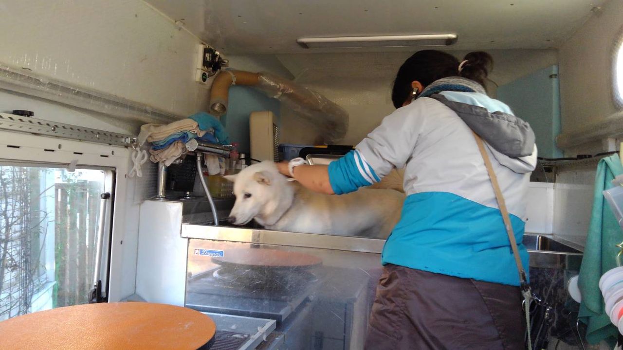 2018年12月09日 老犬ホーム ペットホテル軽井沢 北海道犬 リボンちゃん トリミングへ 移動シャンプーのニコニコさんに来ていただきシャンプー。シャンプー中はとてもお利口だったそうです♪フワフワになって帰ってきました!